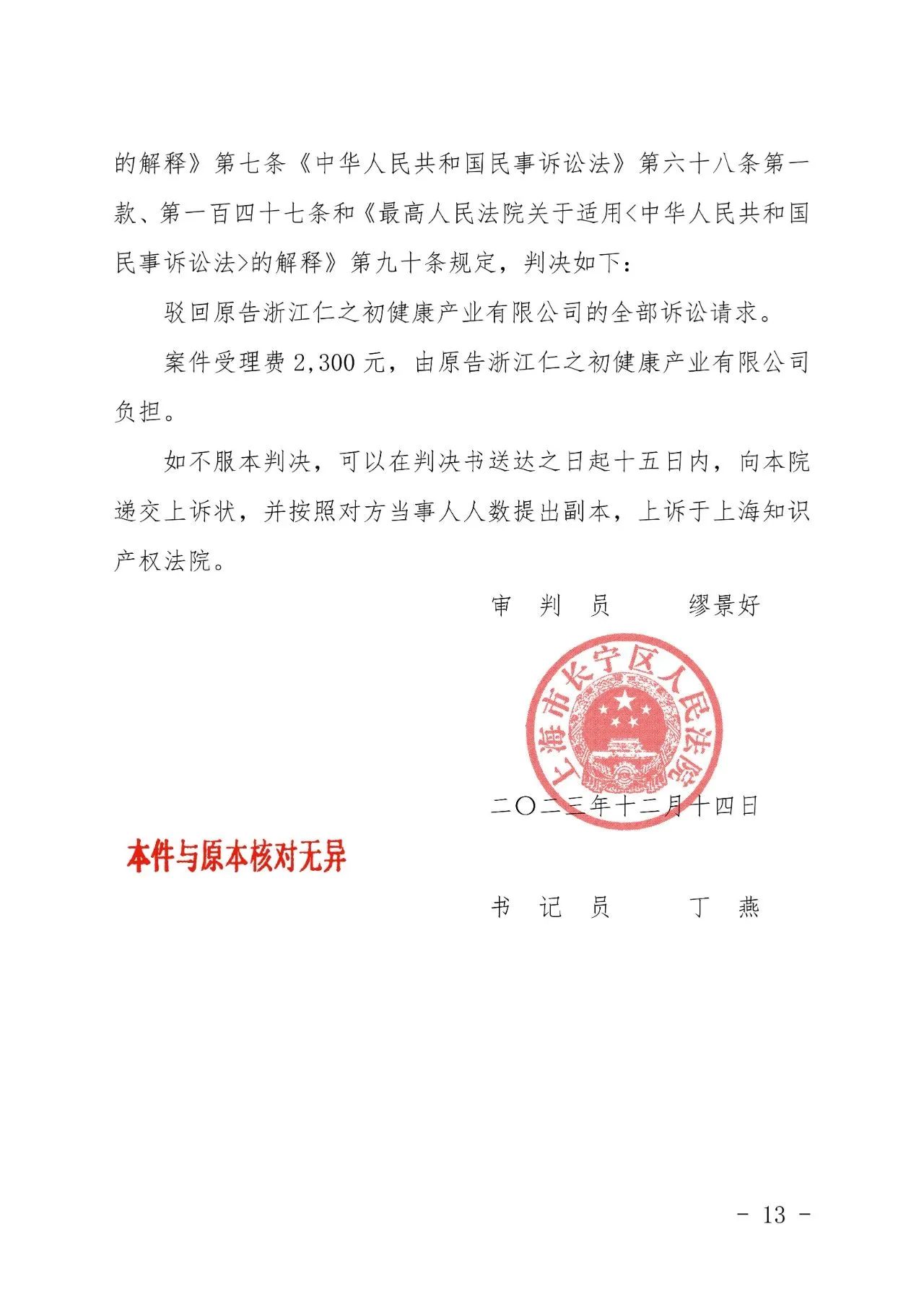 东莞辉知胜诉佳讯 | “仁之初健康”著作权及不正当竞争纠纷案,法院:驳回全部诉讼请求!